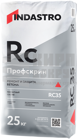 Ремонтный состав Профскрин RC35 – готовая к применению сухая смесь, изготовленная на основе портландцемента, фракционированного песка, полимерной фибры и модифицирующих добавок. После затворения водой образуется тиксотропный раствор для ручного или механизированного метода нанесения. Подходит для нанесения на вертикальные и потолочные поверхности. Продукция экологически безопасна и не содержит вредных примесей, оказывающих отрицательное воздействие на здоровье человека. Соответствует действующим на территории Российской Федерации санитарно-гигиеническим нормам. Продукт изготовлен в соответствии с ТУ производителя из экологически чистого сырья. Преимущества Соответствует классу R3 Обладает высокой прочностью Является безусадочным Быстрый набор прочности Слой нанесения до 50 мм (локально допускается до 200мм) Внутреннее армирование минимизирует тенденцию к образованию трещин